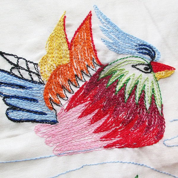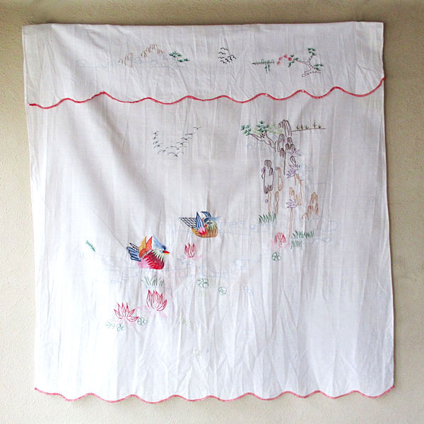 おしどりの刺繍などがついた、古いユーズドのれん♪